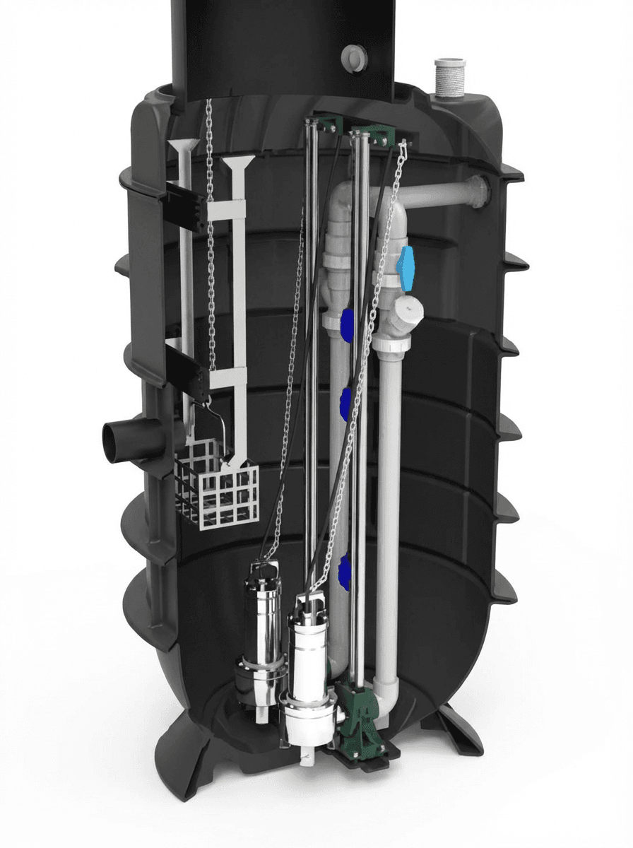 Zwei Pumpen, 1000 mm Schacht – für größere Gebäude und gewerbliche Nutzung.