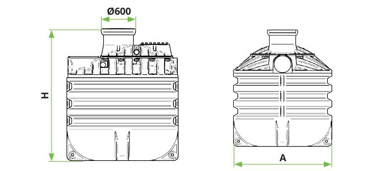- Verstärkungsrippen an beiden Seiten gewährleisten die Stabilität des Tanks und Schutz bei hohem Grundwasserspiegel.