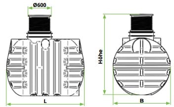 - Die Abdeckung kann einfach auf den Tank geschraubt und leicht an das Gelände angepasst werden. Sie ist kompatibel mit zusätzlicher Erweiterung der Erweiterung im Falle einer tiefen Bodeneinbau. Abmessungen der Erweiterungen sind Ø600 x 300 mm Länge