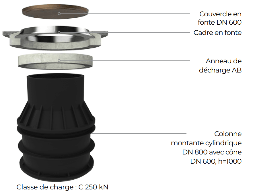 CC8 x 10 Extension cylindrique DN 800 avec cône DN 600, hauteur 1000 mm