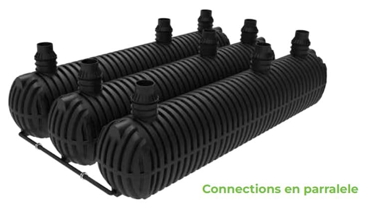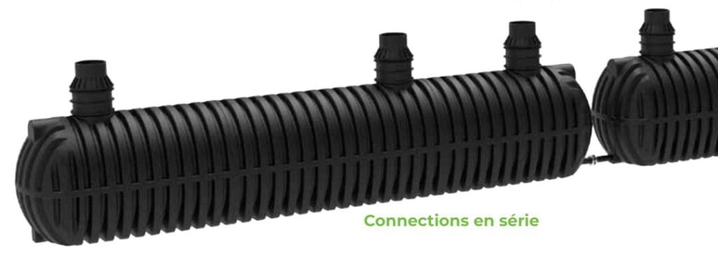 Aucune limite n’est fixée lorsque les réservoirs sont reliés entre eux. Tous les réservoirs RoTerra Drive sont prêts à être intégrés dans des systèmes plus importants. Vous pouvez très facilement relier plusieurs réservoirs les uns aux autres et ainsi augmenter la capacité totale d’eau que vous pourrez capter. En fonction de l’espace disponible, vous pouvez les connecter en parallèle ou en série et combiner les deux types de connexions. Utilisez au mieux tout l’espace disponible pour vos besoins en eau.