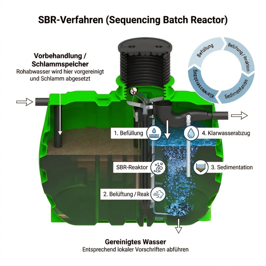SBR-Techniksatz für vollbelüftete Anlagen – ermöglicht die Nachrüstung auch ohne Kammeraufteilung und macht Sammelgruben zu vollbiologischen Anlagen.